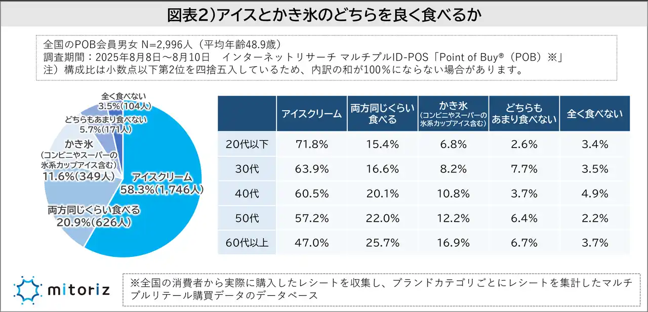 ・「アイスクリーム」と「かき氷」ではアイスが多数派も、かき氷は年代が上がるほど人気 |