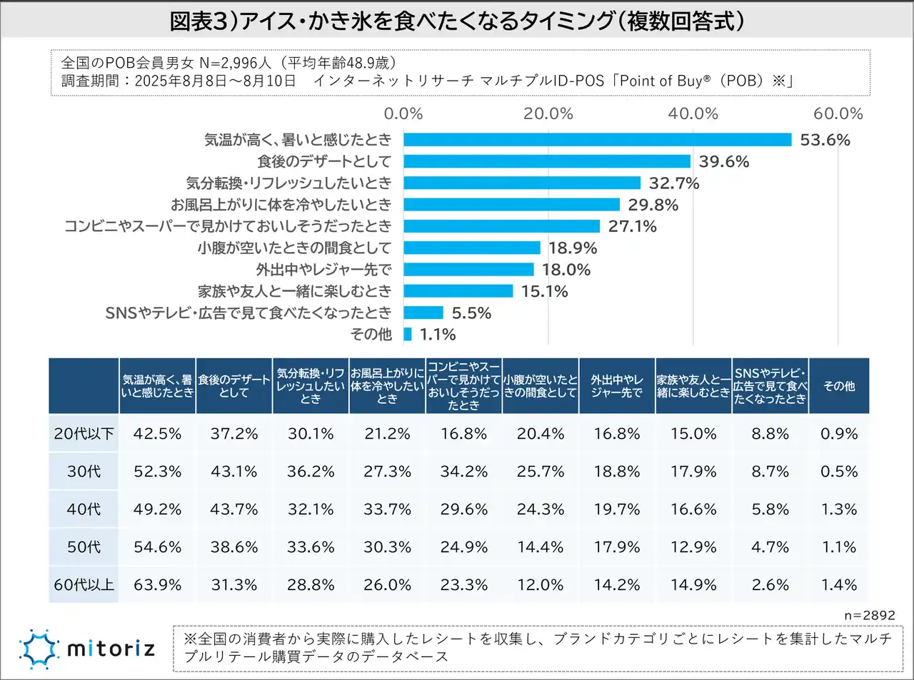 ・食べたくなるタイミングは「気温が高く、暑いと感じたとき」が53.6%、シニア層ほどその傾向が顕著 |