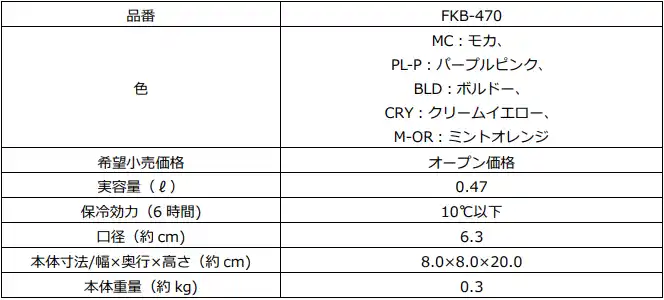 『真空断熱ストロータンブラー(FKB-470)』仕様一覧 |