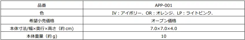 APP-001 左から IV:アイボリー、OR:オレンジ、LP:ライトピンク |