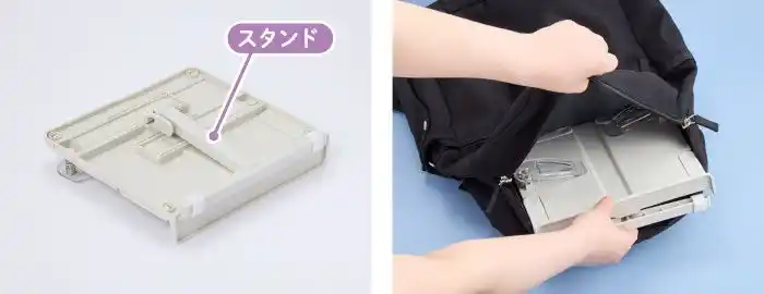 スタンド部分をたためて小さくコンパクトにできるので、バッグなどへの収納もできます。 |