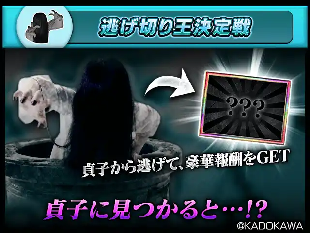 貞子からの追跡をどこまでかわしきれるか、プレイヤー同士で“逃走力”を競い合います。 |