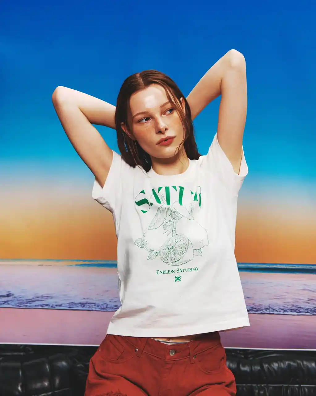 | SATUR「土曜日をプレゼントしよう」というスローガンをもとに、2020年にローンチしたコンテンポラリーブランドです。ブランド名である「SATUR」は、"SATURDAY(土曜日)"から生まれ、 土曜日のゆったりとした穏やかな感性を表現したスタイルを展開しています。個人の好みに合った"土曜日の多様な魅力”で人気を博している。 | |||||||||