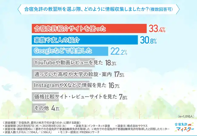 ・情報収集は「合宿免許紹介サイト」が最多、効率性と口コミの両方がカギ |