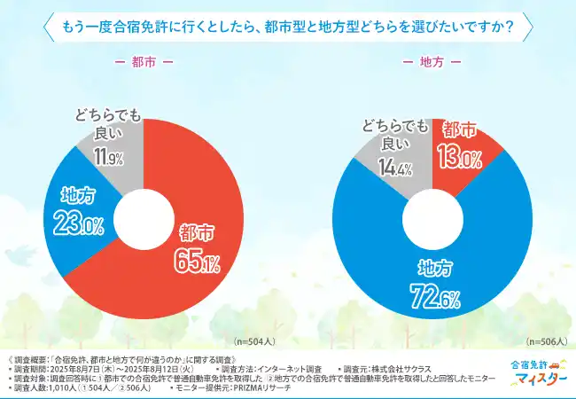 「もう一度合宿免許に行くとしたら、都市型と地方型どちらを選びたいか」について尋ねたところ、 |