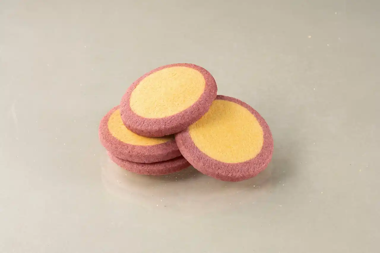 『大学芋クッキー』は、上品な甘さとフルーティーな味わいが特徴の品種≪紅まさり≫のペーストとパウダーを使用。パールシュガー、カラメルチップ、アーモンドを生地に混ぜ込み、大学芋のカラメル感とカリカリ食感を追求いたしました。※製品中 紅まさり20.4%(生換算) |