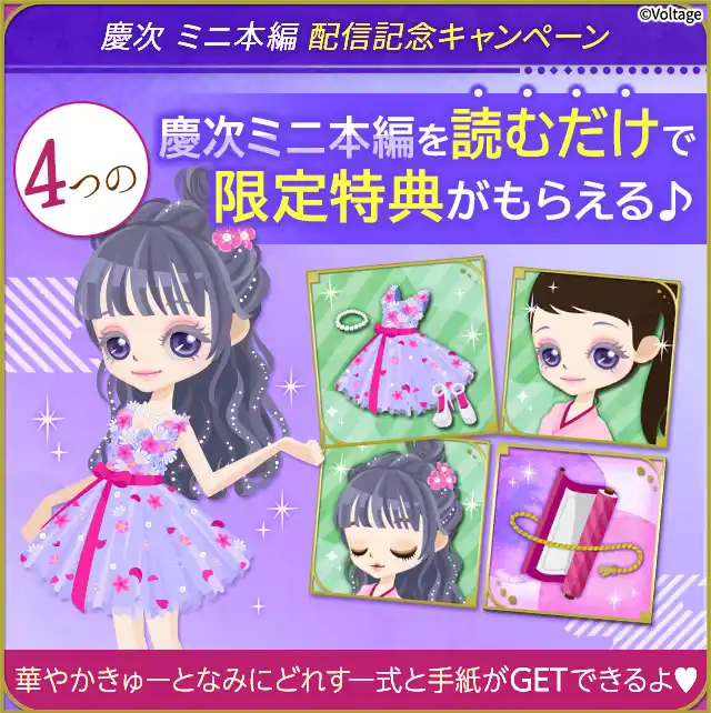 アプリでは慶次のミニ本編配信を記念したキャンペーンを実施中です。ここでしか手に入らない慶次からの手紙のほか、限定アバターが手に入るチャンスとなりますのでこの機会にご参加ください。 |