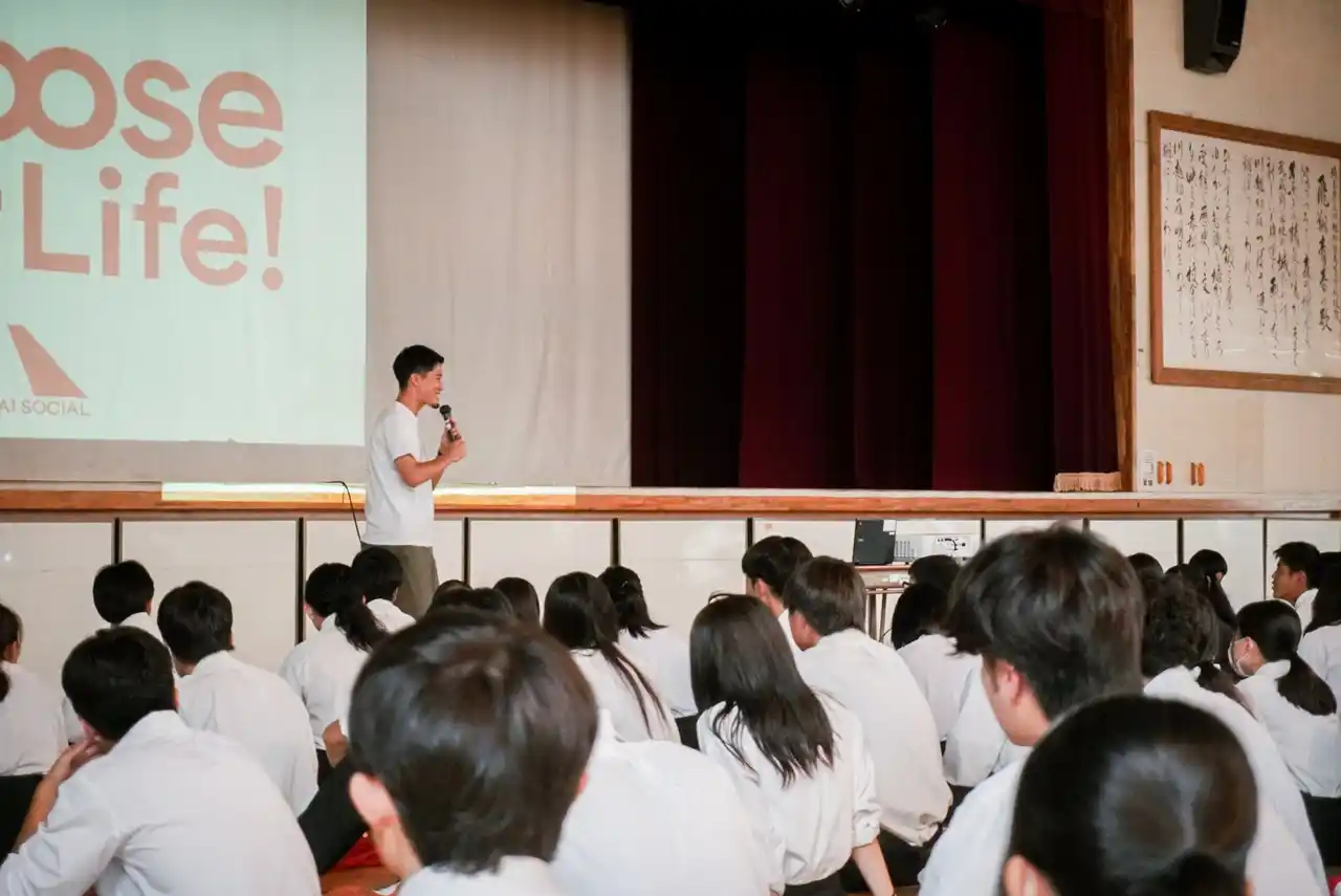 「どんな環境からでもなお、あなたは人生を選べる」そんなメッセージを届けるべく、ハッシャダイソーシャルのメンバーが直接、全国の高校や少年院、児童養護施設に足を運んでいます。 |