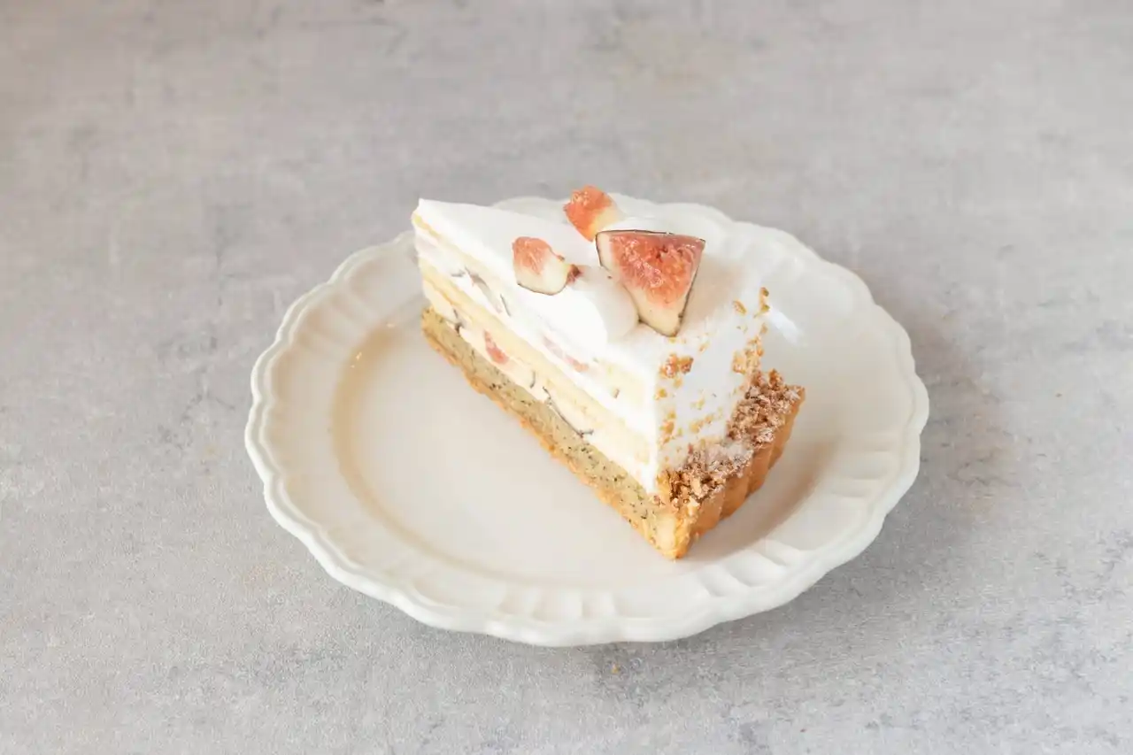 しっとりとしたスポンジと軽やかなクリームに、甘く熟れたいちじくを贅沢にトッピング。 |