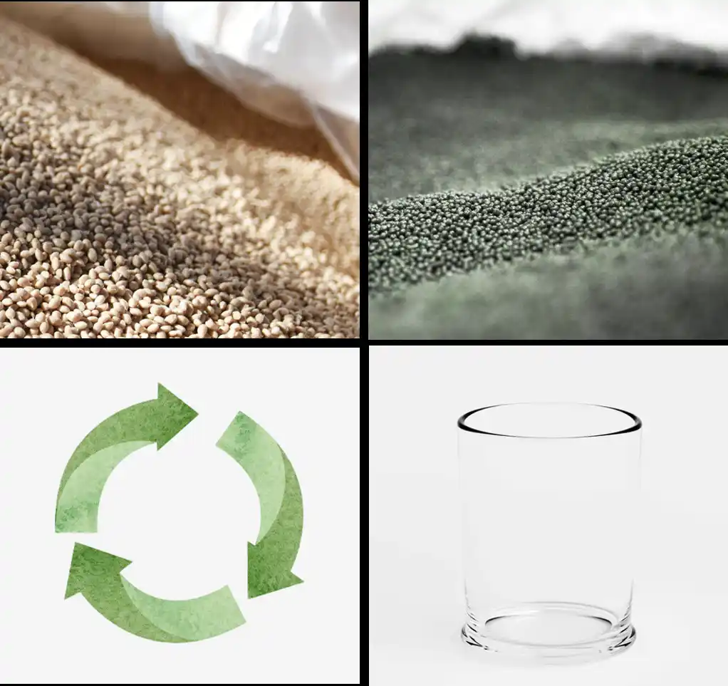 製品に使用される部材は、主にヨーロッパのサプライヤーから調達されています。再生プラスチックや複合素材はドイツおよびベネルクス諸国から、フラワーベースなどに使われるガラスもヨーロッパで製造されています。 |