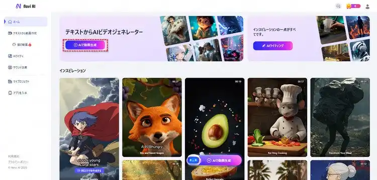 ステップ1.PCやスマホから下のボタンをクリックしてオンラインサイトを開き、「AIで動画を生成」を選択します。 |
