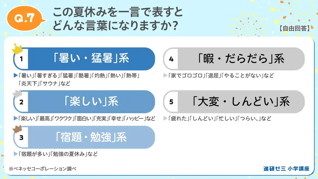 7. この夏休みを一言で表すとどんな言葉になりますか?【自由回答】 |