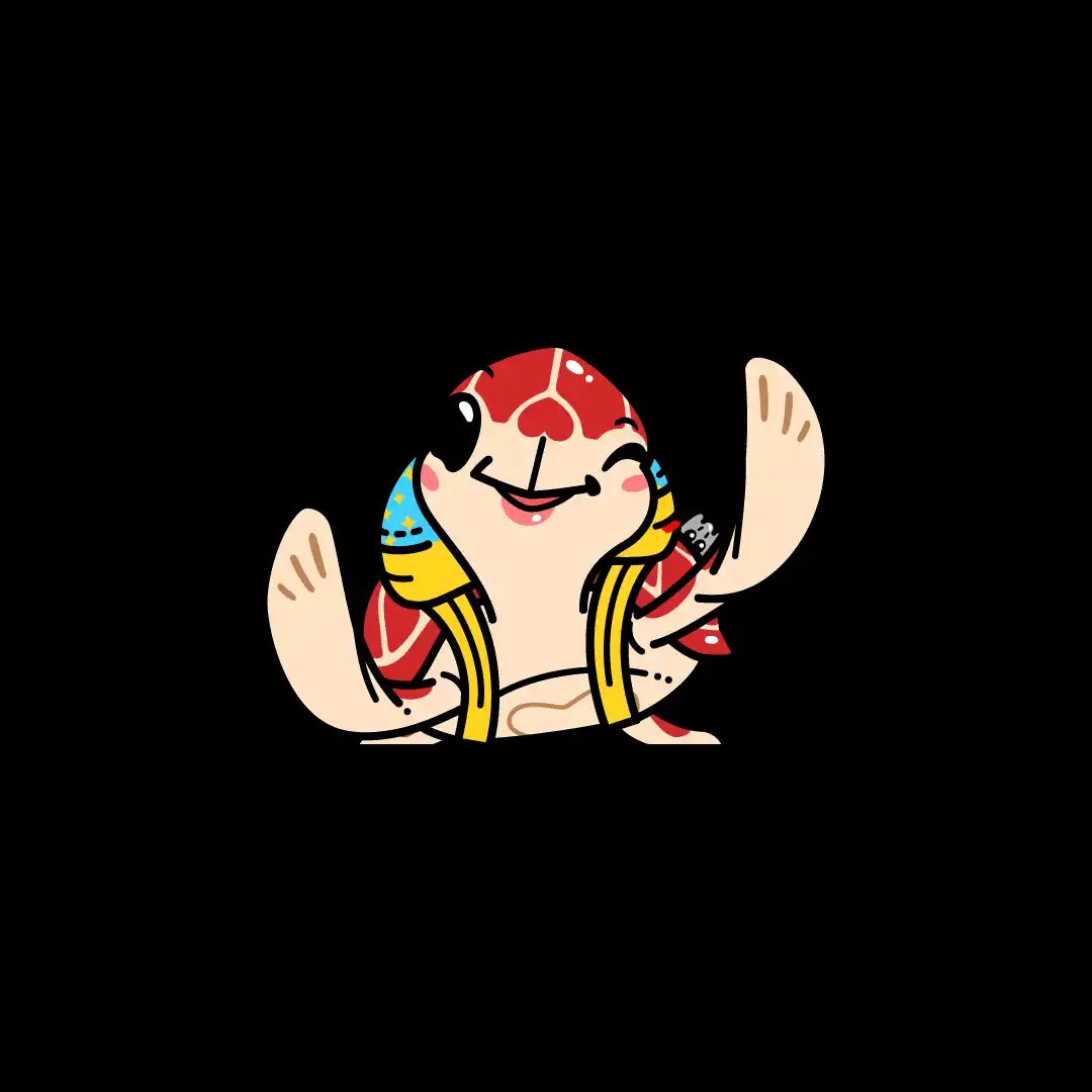 仲間たちの中で一番お姉ちゃんのような存在。色々な経験をしてきているのでみんなの相談役。背中のリュック には、ペタタのポーチに入らない道具が入っている。甲羅にはいつからか住み着いたフジツボの「フーちゃん」がいるが、お互いの顔を見たことがない。 |