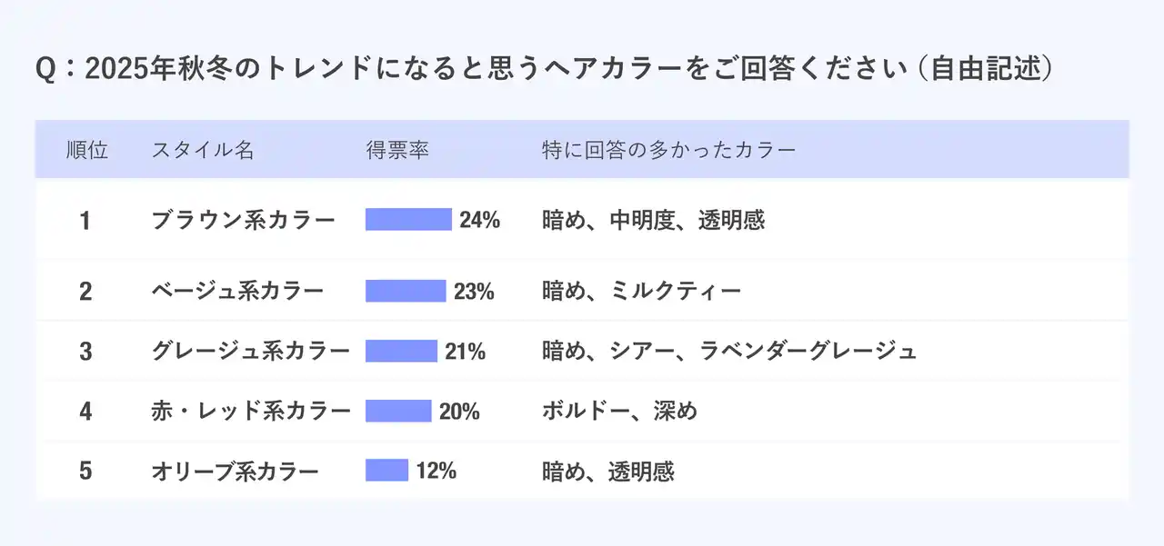 ▼2024年秋冬トレンドヘアカラー調査結果 |