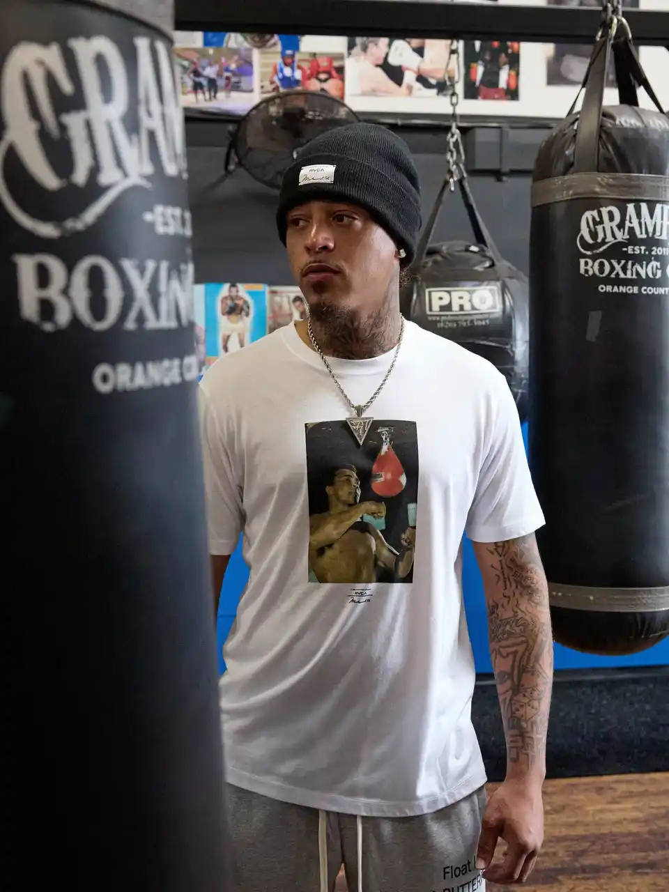 モハメド・アリは、“The Greatest”の異名を持つアメリカ合衆国出身のプロボクサーであり、公民権運動の活動家としても知られています。3度のヘビー級世界王者としてリングの上で伝説を築き、リング外でも正義と自由を訴える姿勢で多くの人々を魅了しました。 彼のスタイルと信念は、RVCAが大切にする「相反するものの調和」と強く結びつき、今回のコラボレーションではそのスピリットを現代のストリートウェアへと昇華させています。 |