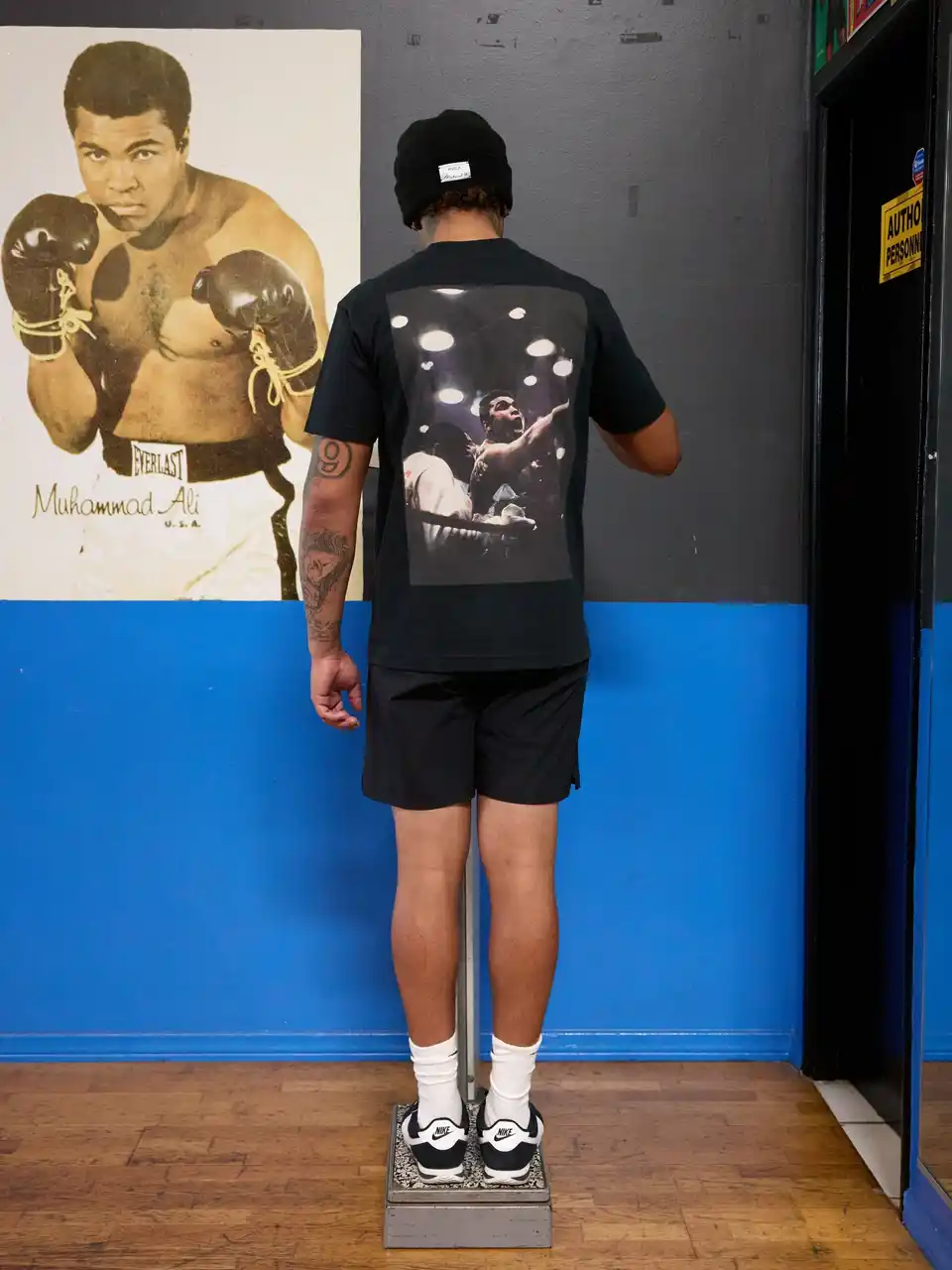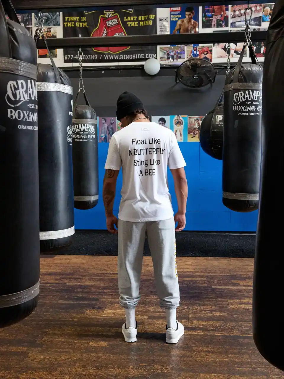 本コレクションでは、アリの残した名言や、数々の試合の中で生まれた印象的な瞬間をグラフィックに昇華し、彼の精神を現代のストリートスタイルへと落とし込みました。フーディー、スウェットパンツ、Tシャツ、ヘッドアクセサリーなどといったアイテムの随所に込められたデザインは、着る人に「限界を超える勇気」と「信念を貫く強さ」を語りかけます。 |