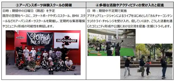 一般社団法人西梅田地下道管理協議会は、大阪市が実施する「官民連携よる西梅田公園の活性化に向けたトライアル実施付きマーケットサウンディング(市場調査。以下、「TMS」という。)」に参加し、9月1日(月)から11月30日(日)にわたり、『西梅田公園』における実証実験「Re:EDGE PARK Nishi-Umeda」を行います。 |