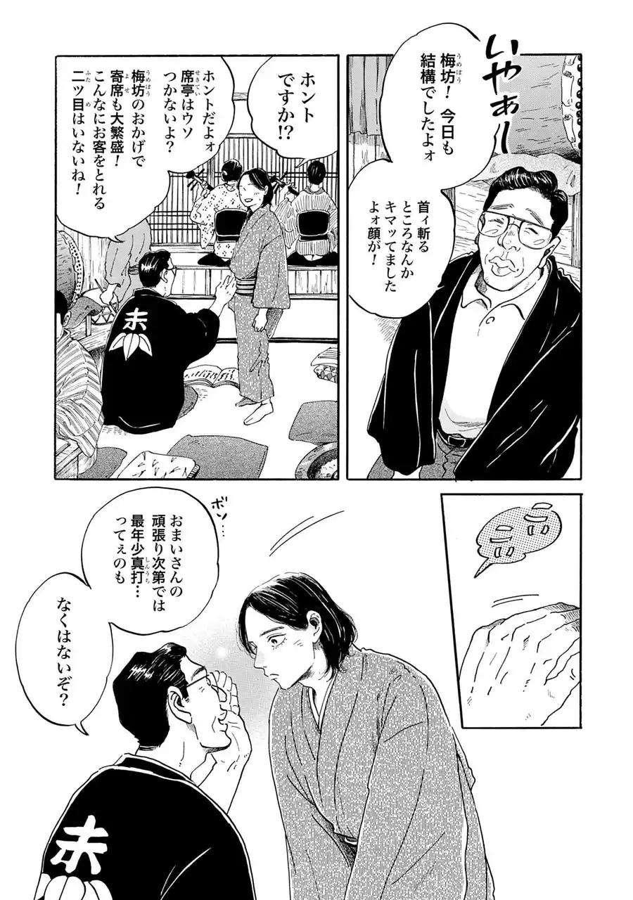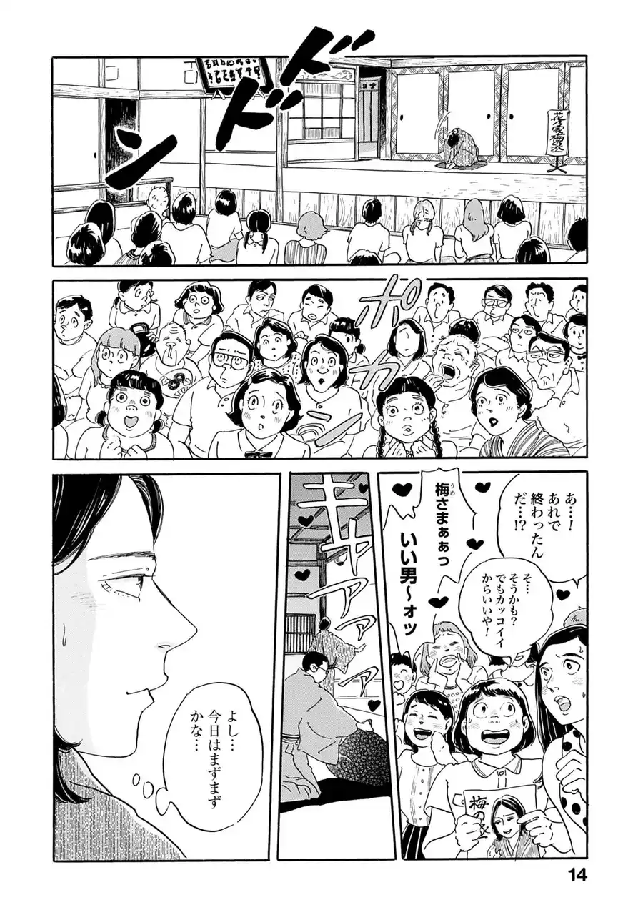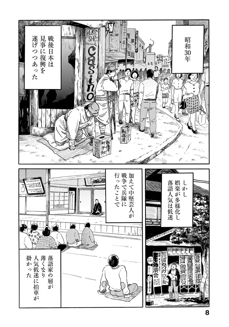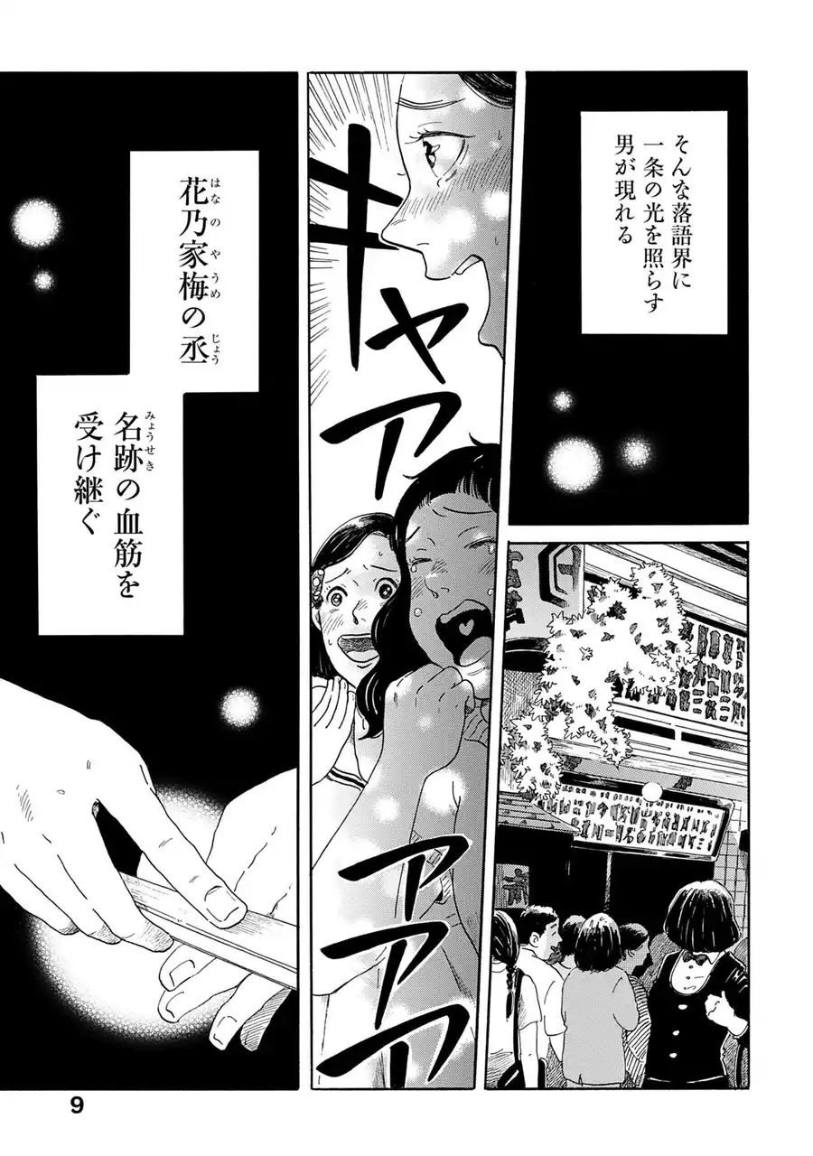 娯楽が多様化し、落語の人気が低迷した昭和30年。そんな中、落語界に彗星のごとく現れた美男子・花乃家梅の丞。彼は天才少女・すず梅に出会い、自分の“才能のなさ”を痛感する。そこから、向かうところ敵なしだった梅の丞の、挫折の連続が始まる。果たして、梅の丞は“外見”だけに頼るのではなく、成長し“実力”で落語界を這い上がっていけるのか、今後が非常に気になるところだ。 |