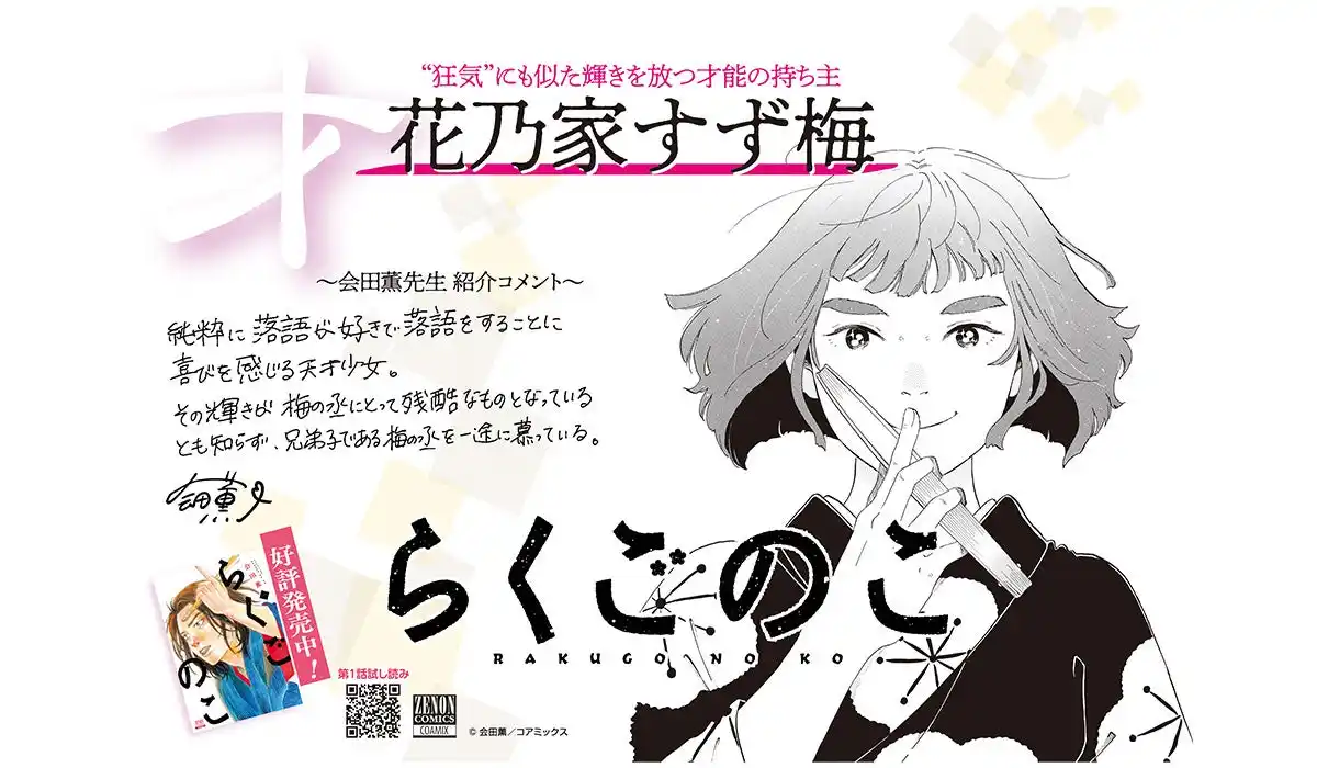 『らくごのこ』第1巻 発売日:2025年8月20日 ISBN:9784867207901 試し読み:https://comic-zenon.com/episode/2550912965209652998 編集・発行・発売:コアミックス |