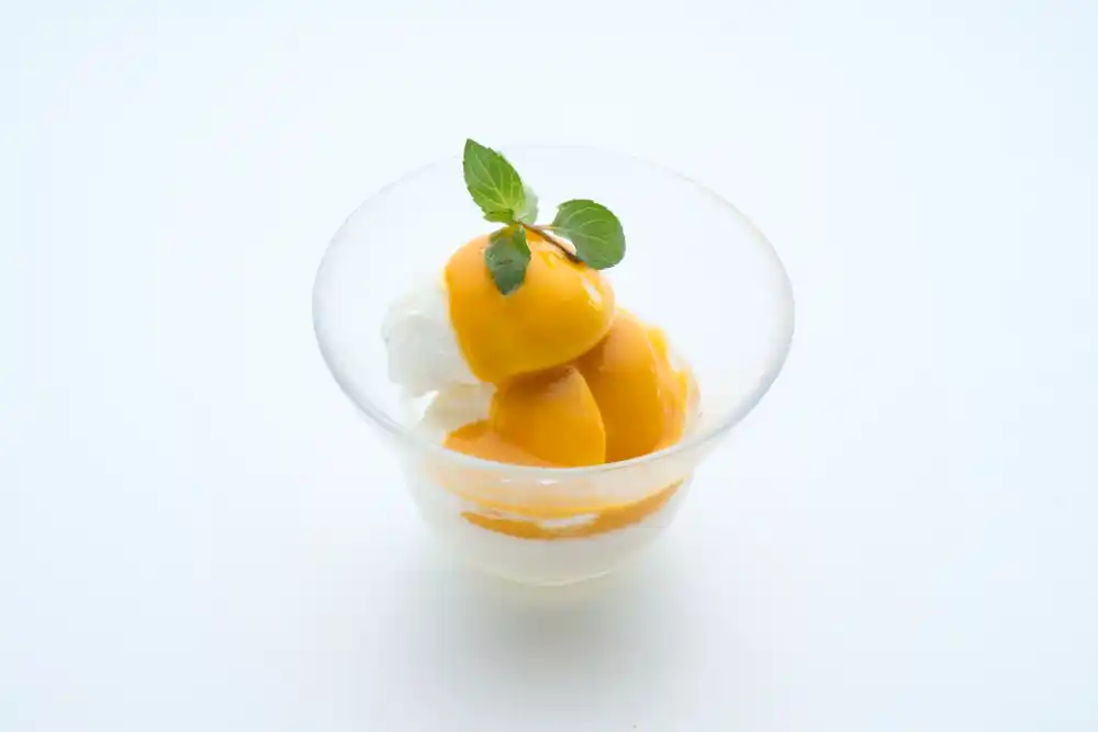大人気のココナッツアイスにこの期間限定のマンゴーソースをかけました。 |