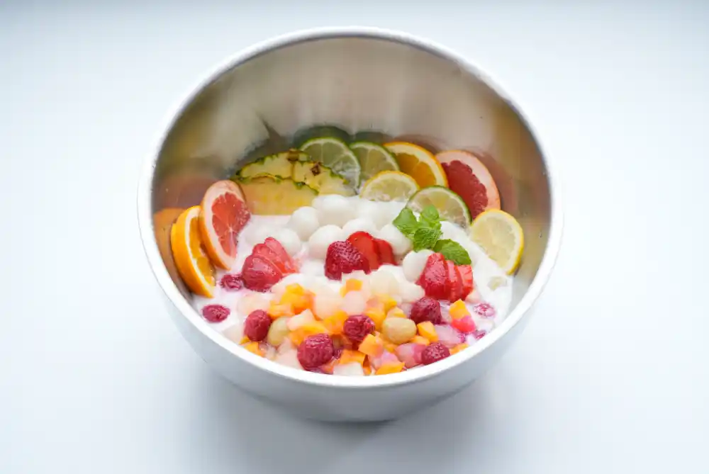 〈馳走三昧〉苺とトロピカルフルーツのココナッツ白玉 ビュッフェメニュー/12階 |