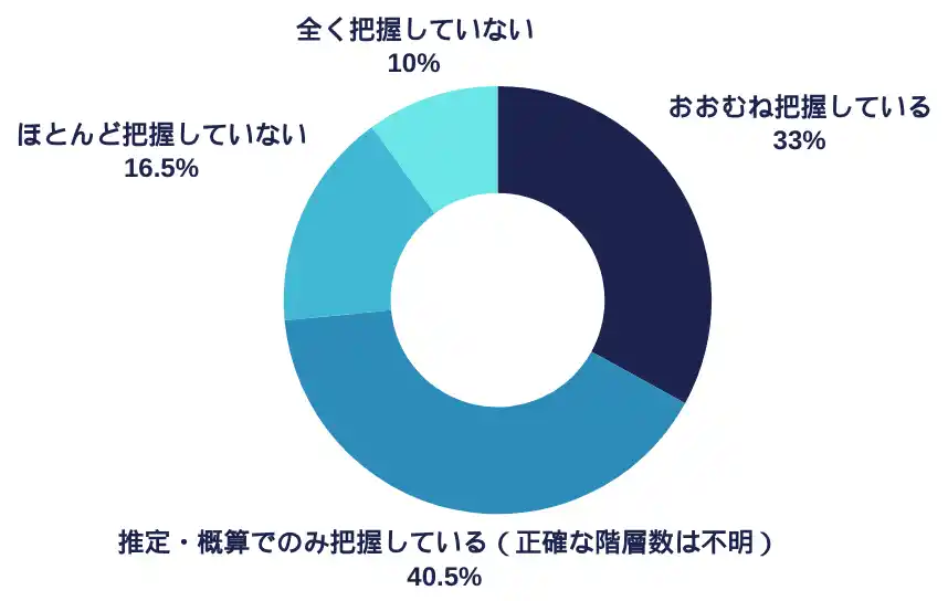 | 「具体的な階層数が分かる」荷主はわずか33%。品質・コスト・コンプライアンスにおける潜在的リスクが浮き彫りに。 |