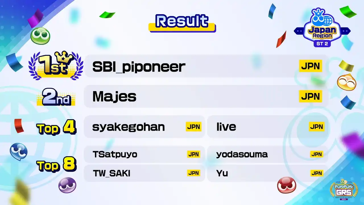株式会社セガは、ジャパン・eスポーツ・プロライセンス認定タイトルである、対戦アクションパズルゲーム「ぷよぷよ」シリーズについて、2025年8月23日(土)にオンラインで開催された、「Puyo Puyo Global Ranking Series 2025 SEGA Official Tournament 2」の大会結果をお知らせいたします。 |