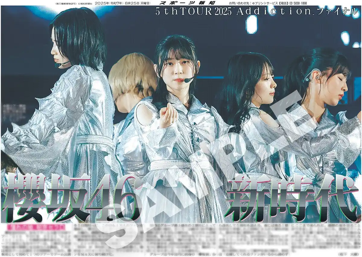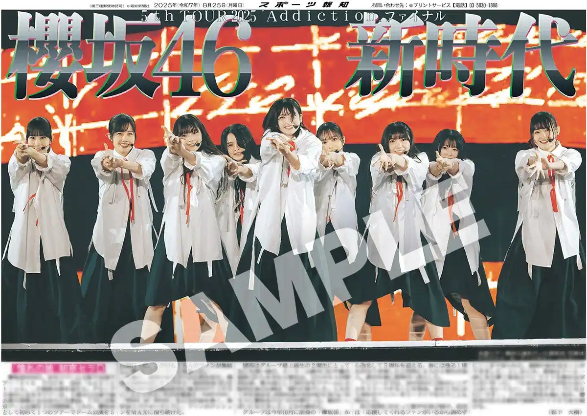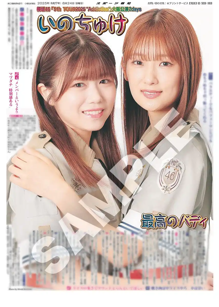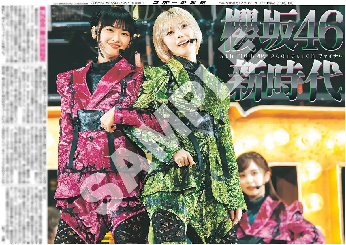 | スポーツ報知を発行する報知新聞社(代表取締役社長・長谷川剛)は新聞の一部紙面をコンビニエンスストアのマルチコピー機からプリントできる「スポーツ報知コンビニプリント」サービスを展開中。スポーツ紙ならではの大きな写真を使った紙面をプリント版として販売しています。8月23、24日に開催された櫻坂46「5th TOUR 2025 "Addiction"」京セラドーム大阪公演にあわせ、会場周辺で発売した「櫻坂46特別1面新聞」の紙面を発売中です。井上梨名と武元唯衣のスペシャル対談を収録した前後編の紙面になります。また、ライブの様子を伝えた25日付紙面も4パターン発売。合計6種類の櫻坂46の紙面をお買い求めいただけます。 | ||||||||||||||