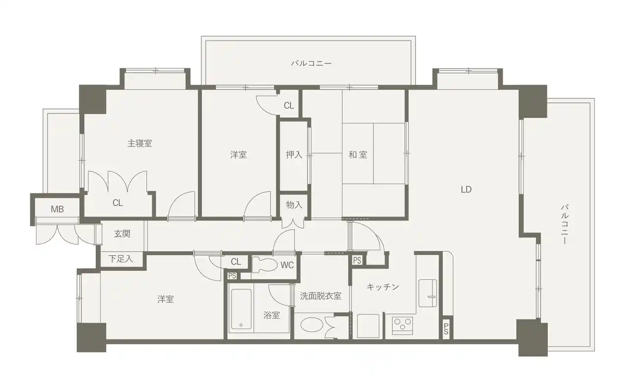 玄関土間からウォークインクローゼット、ランドリースペースへとつながる家族専用の動線を確保。来客動線と分けることでプライバシーを守りながら、収納や洗濯などの家事もスムーズに行えます。 |