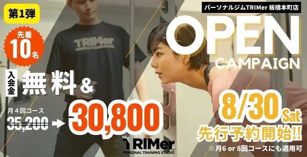 | 中野新橋店に続く3店舗となるパーソナルトレーニングスタジオTRIMer板橋本町店がNEW OPEN!先着30名様限定オープンキャンペーン実施中! |