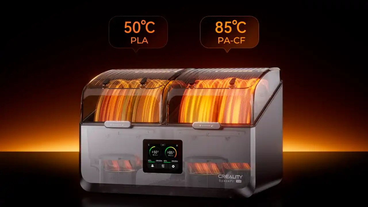 | 360°熱対流設計とワンウェイバルブにより、フィラメント全体を均一に乾燥し、再吸湿を防止します。 | |||||||||||||||||||||||||||||||||