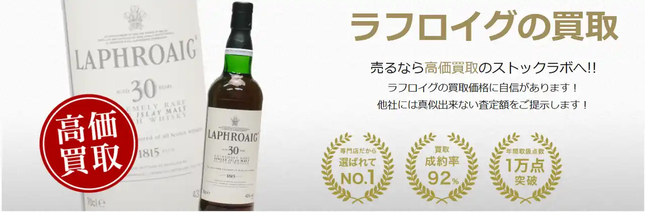 今回は、そんなラフロイグ買取におすすめのストックラボをご紹介します。実際の買取実績や口コミを紹介しながら、なぜおすすめなのかをお伝えするので、ラフロイグの売却をご検討のお客様はぜひ参考にしてください。 |