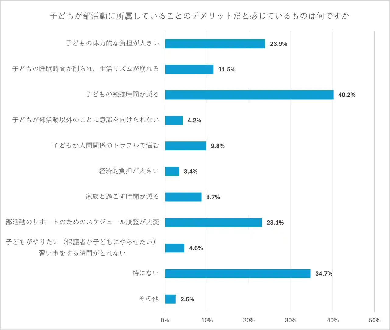 保護者が感じている、子どもが部活動に所属していることのデメリットを保護者に聞いた。 |