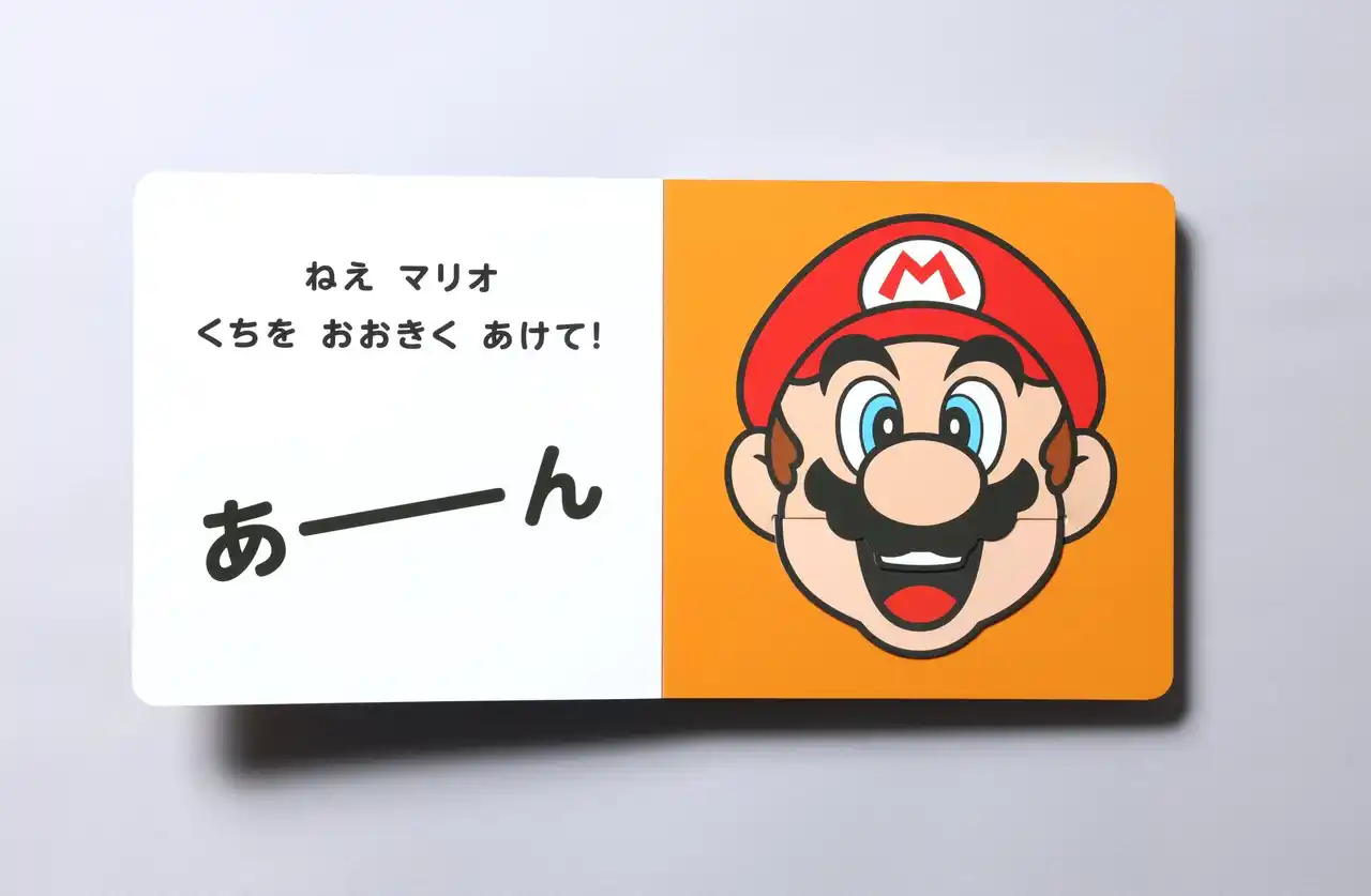 | 「マイマリオのえほん『かおマリオ』」が本日8月26日(火)に小学館より発売されました。本書は、小さなお子様向けの商品シリーズ「マイマリオ」のひとつであり、マリオの「かお」を動かして遊ぶことができるしかけ絵本です。口が「あーん」と開いたり、お顔がぐるぐる回ったり、ヒゲがムムムと動いたり、1冊のなかでさまざまな動きを楽しむことができます。紙を何枚も重ね、構造を工夫することで、あっと驚くような動き方を実現しました。ぜひ読み聞かせをしながら、お子様と一緒にマリオの「かお」をあちこち触ってみてください。 | |||||||||