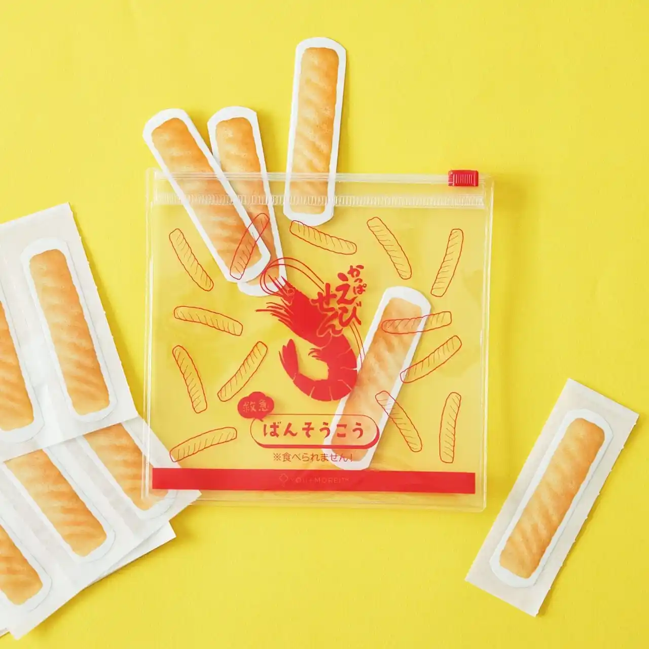 けがをしたときも、貼るたびに笑ってしまいそうな、かっぱえびせんのばんそうこうです。 |