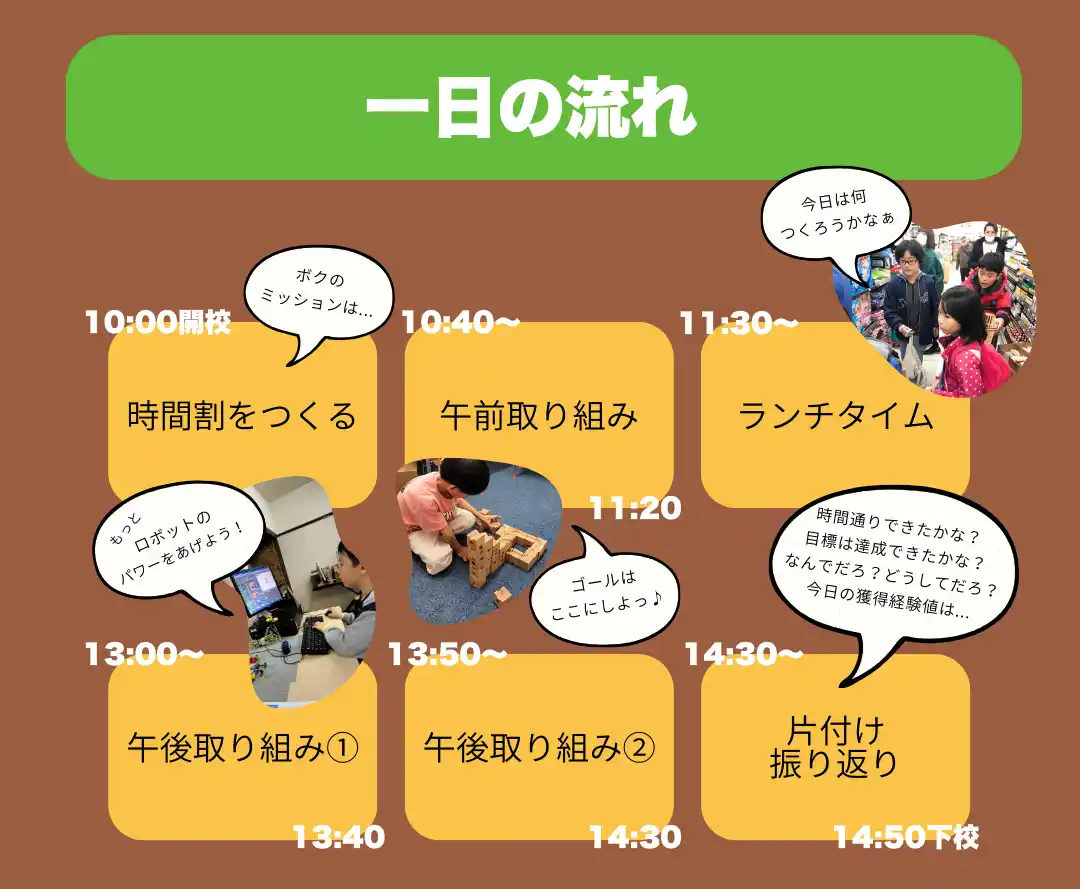子ども達一人ひとりの個性に合わせた独自の”対 話型個別指導”から始まり、”eスポーツ教育”や”自 由進度学習”、キャリア教育の”経営疑似体験リア ルお店屋さんごっこ”や自然からプログラミング 的思考を学ぶ”プロサバ”まで多くの遊びながら学 ぶ教育環境を創ってきました。 |
