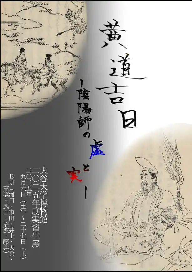 また博物館学芸員資格の取得をめざす博物館学課程の実習生たちが、企画から展示までをおこなう「実習生展」も併催いたします。「京さんぽ~巡礼の今と昔~」は西国三十三所巡礼等の寺社をめぐる人びとの姿を、B班「黄道吉日-陰陽師の虚と実-」は様々な史料に描かれた陰陽師の姿をそれぞれ紹介しています。あわせて、今回の内覧会では、各班の実習生が各展示についての説明を行い、質問等にもお応えいたします。 |