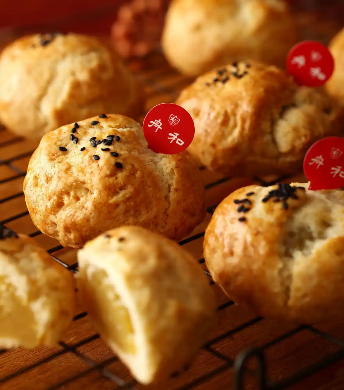 | 舟和のさつまいもペーストをフランス産発酵バターを使用したバタ―ミルクスコーンで包みました。 | |||