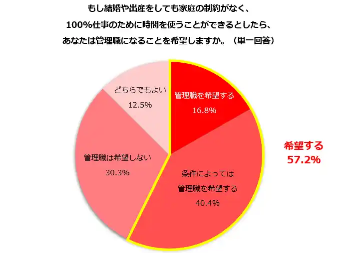5.もし結婚出産しても100%仕事に時間を使えたら管理職を「希望する」57.2% |