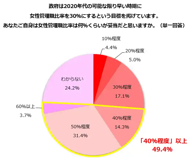 3.女性管理職の妥当な比率「40%程度」以上 49.4% |