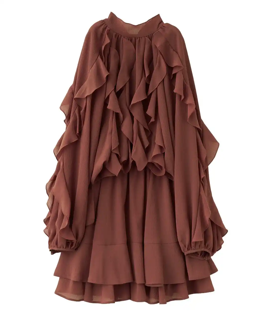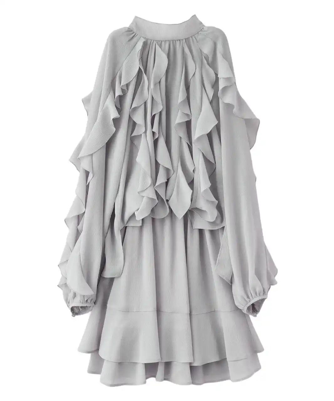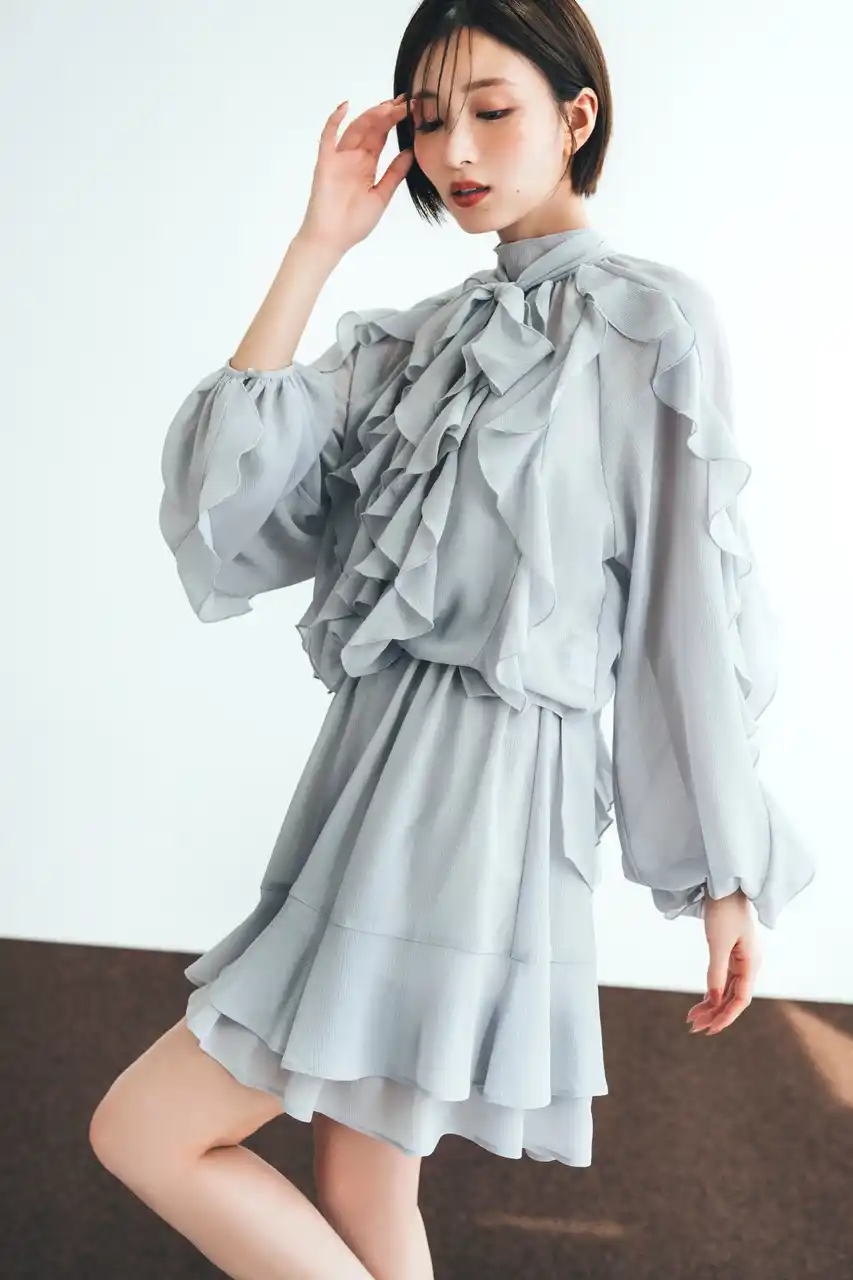 | ふんだんなフリルが特徴的なミニワンピース。 | |||||||||||||||