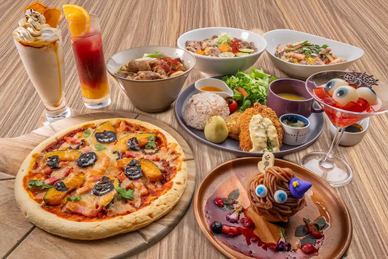| カフェレストランでは、山形の豊かな秋の恵みをふんだんに使った限定メニューが登場します。旬のぶどうやマッシュルームを使った料理から、ハロウィン限定のユニークなメニューまで、全10種類をご用意。 | ||||||||||||||
