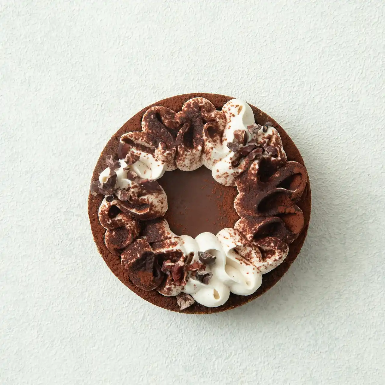 果実味豊かな有機カカオマスを贅沢に使用した自家製生チョコを、ふわふわホイップと有機カカオニブが引き立てます。 |
