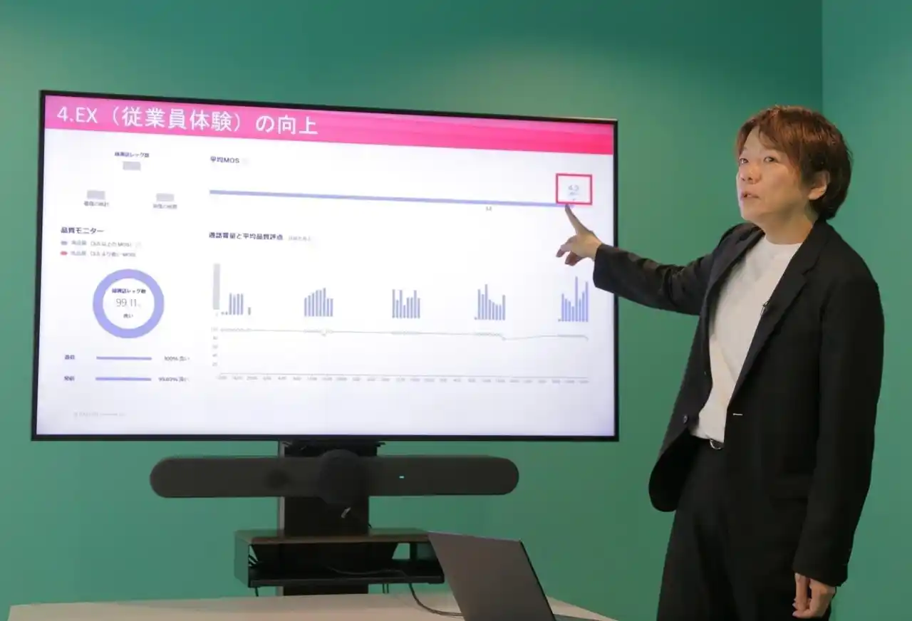 また、従来の課題であった音質低下の原因特定も「通話品質ダッシュボード」により大きく解消されました。通話記録ごとに品質を示すMOS(Mean Opinion Score)値が表示され、低品質とされる 3.5 以下の場合は発信・着信それぞれのビットレートやパケットロス、ネットワーク遅延などが数値で可視化されるので、原因の特定が容易になりました。 |