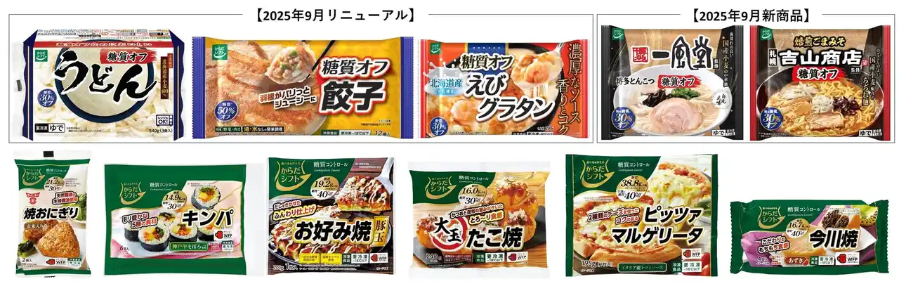 <餃子、えびグラタンは味や食感を改良しておいしく糖質オフ。パッケージも刷新。> |