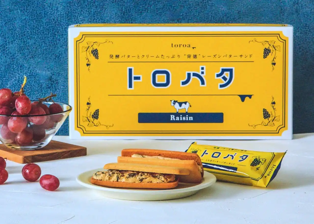 | 背徳のレーズンバターサンド「トロバタ」の中でも一番人気のレーズン味。 ミルクリッチでジューシーなラム漬けレーズン入りのクリームを発酵バターたっぷりの香ばしいクッキーで挟んでいます。 | |||||