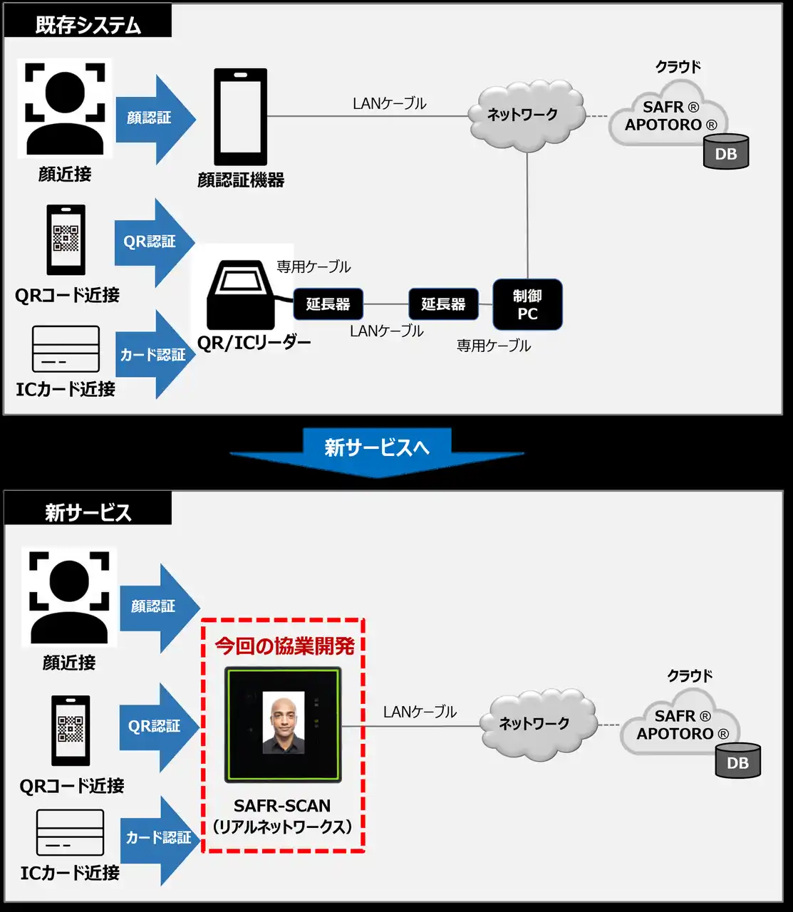 これにより、来訪者予約受付システム「APOTORO(R)」から発行されるQRコードの読み取りも可能となり、顔認証、ICカード認証とQRコード認証を組み合わせたマルチ認証により、セキュリティ性のさらなる強化と利便性の向上を同時に実現します。 |