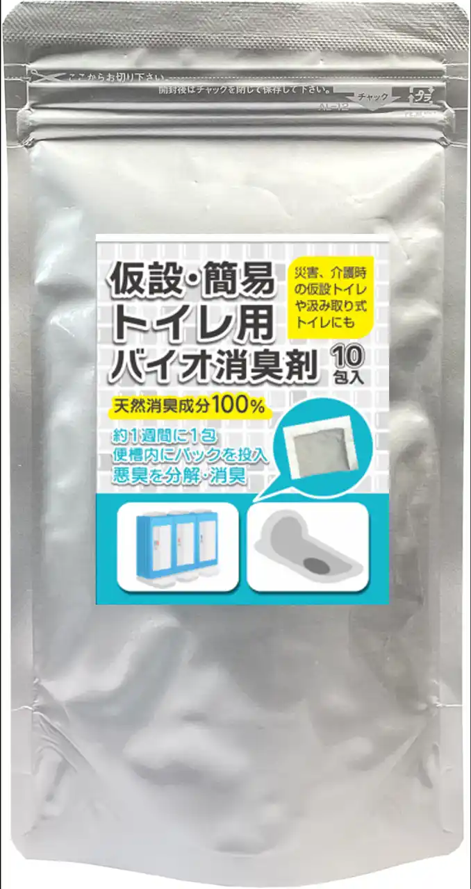 当社の「簡易トイレ用バイオ消臭剤」は、この社会課題を解決するために開発されました。防災備蓄品としてストックしておくことで、万が一の事態でも、清潔で快適なトイレ環境を維持することができます。 |