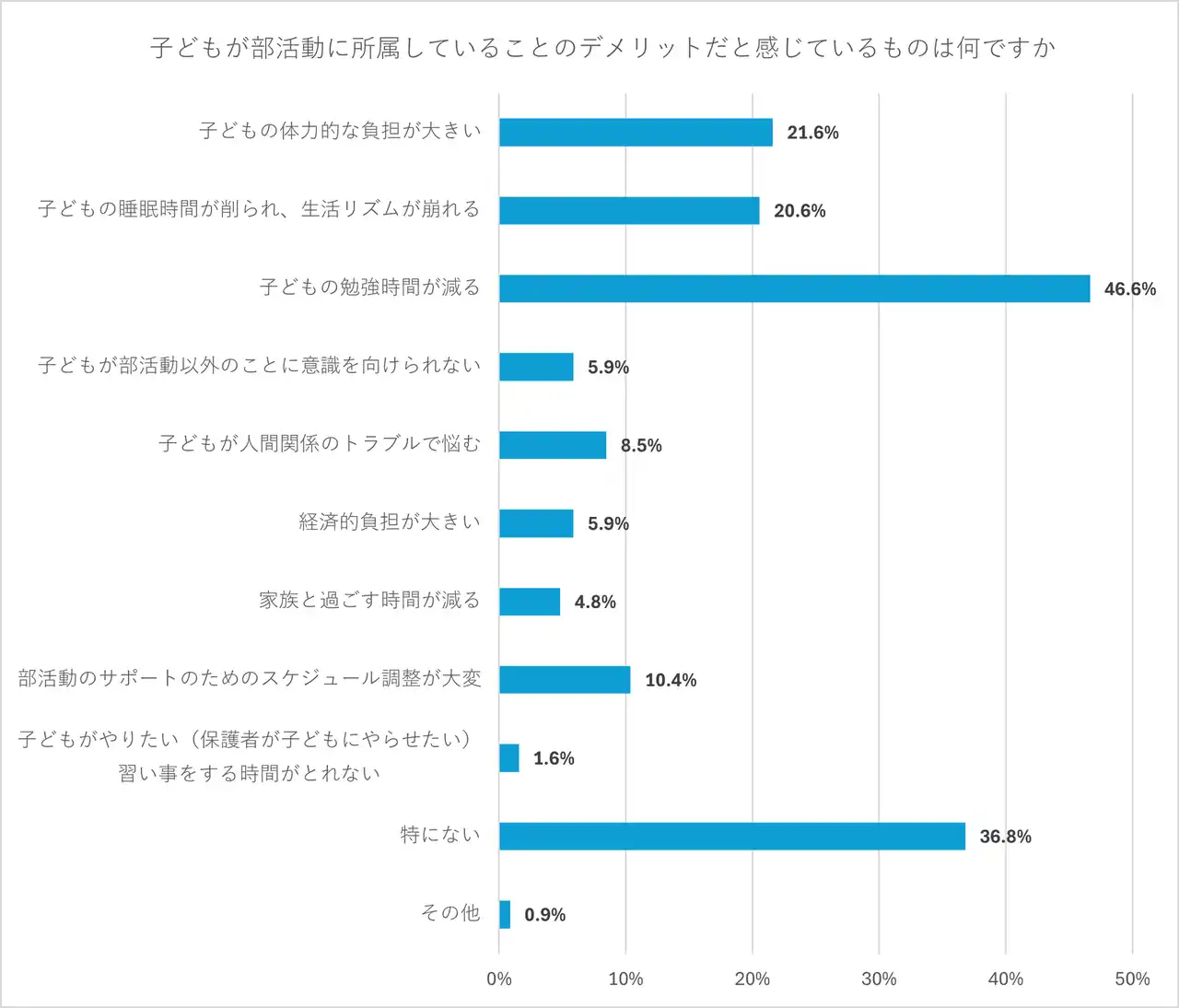 保護者が感じている、子どもが部活動に所属していることのデメリットを保護者に聞いた。 |