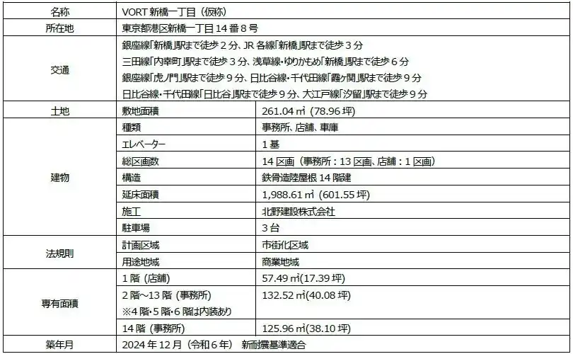 | 「区分所有オフィス(R)」を主軸に資産形成コンサルティングを行う株式会社ボルテックス(東京都千代田区 代表取締役社長 兼 CEO 宮沢 文彦、以下当社)は、「VORT新橋一丁目(仮称)」を取得しました。 | |||||||||